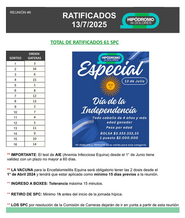 En la cual se repite la misma programación y programa de carreras, tal cual estaba previsto, además ya se cuenta con varios cuidadores que permanecen con sus ejemplares para dicha reunión hípica.